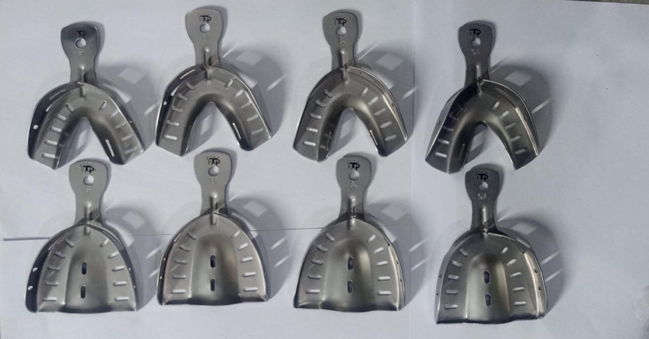 Adjustable Impression Trays are high-quality, heat-mouldable trays designed to record accurate impressions in dentulous cases. Their adjustable design allows adaptation to various arch forms and sizes, ensuring superior patient comfort and precision. The strategically placed perforations throughout the tray enhance mechanical retention of the impression material, preventing it from dislodging or falling during placement or removal. Fabricated from durable, biocompatible material, these trays maintain their shape after moulding and are easy to handle chairside. Ideal for both preliminary and final impressions, they deliver reliable performance and excellent fit in clinical practice, optimizing the workflow for dental professionals.Ideally used in recording impressions of dentulous cases. Perforations in the tray provide great adhesion of impression material to the trays preventing it from falling in patient’s mouth.